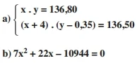 a) Sendo x a quantidade de pacotes e y o preço, em reais, de cada pacote, um sistema de equações possível é: