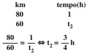 Uma rodovia liga as cidades A e B, cuja distância entre elas é de 120 km. A velocidade máxima permitida nessa rodovia varia conforme o trecho. Na primeira metade, o limite máximo de velocidade é 100 km/h e na segunda metade, 80 km/h.
